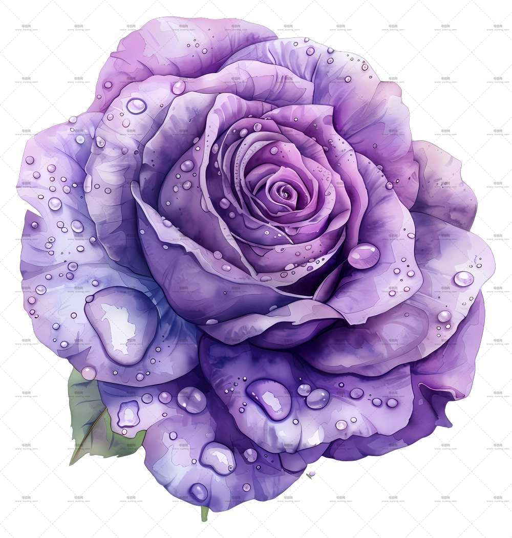带绿叶美丽逼真玫瑰花PNG免抠图