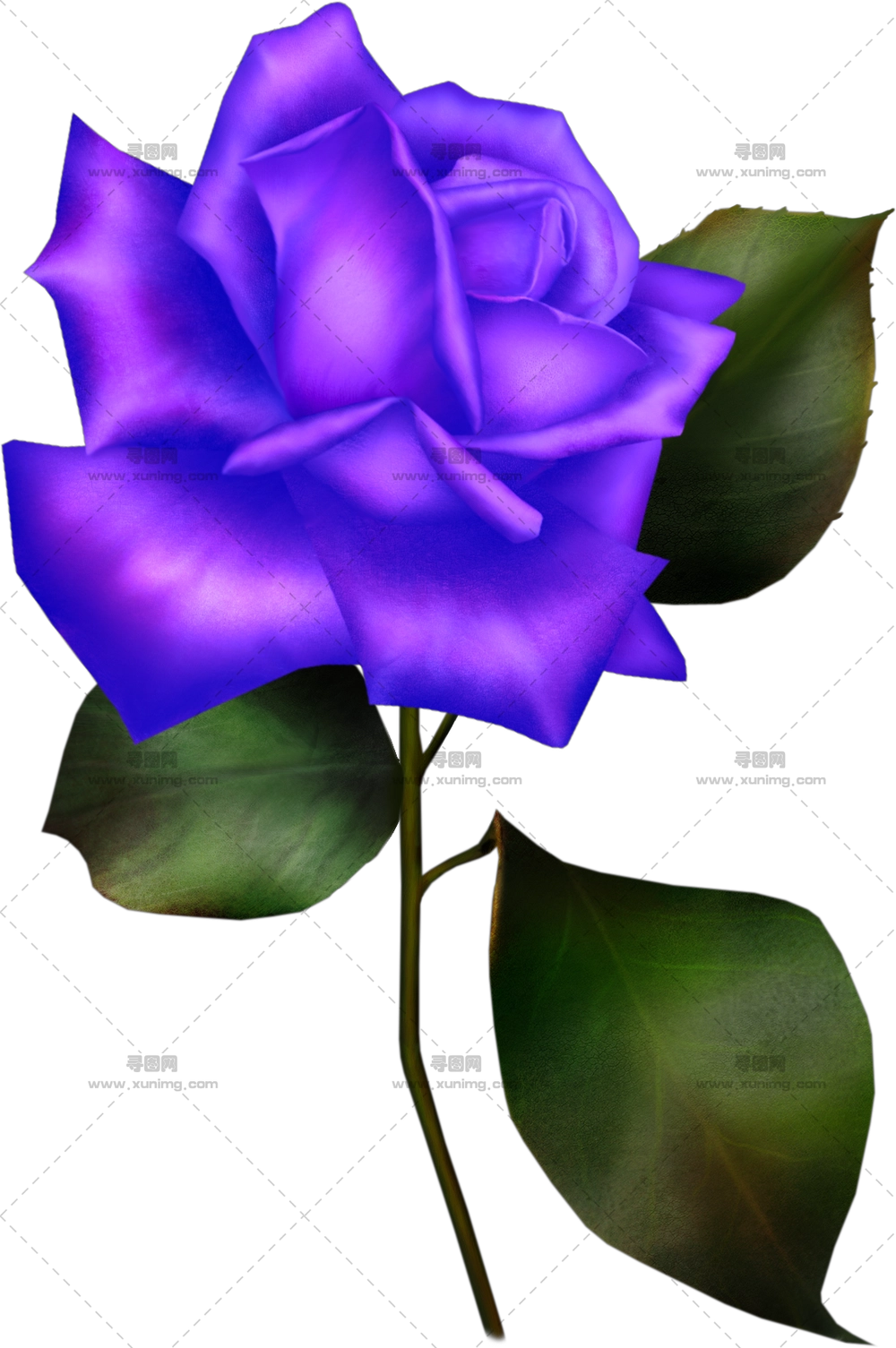 带茂密绿叶的紫玫瑰PNG免抠图预览图