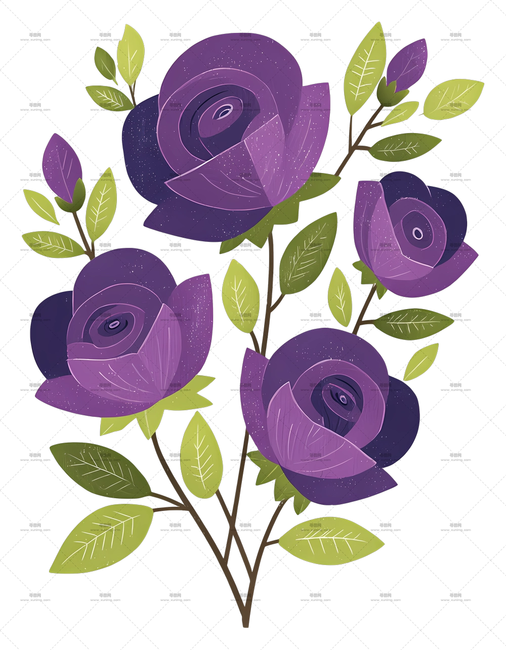 带绿叶的优雅紫玫瑰PNG免抠图预览图