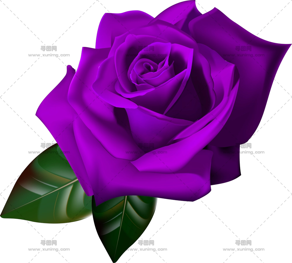 带绿叶的优雅紫玫瑰PNG免抠图预览图