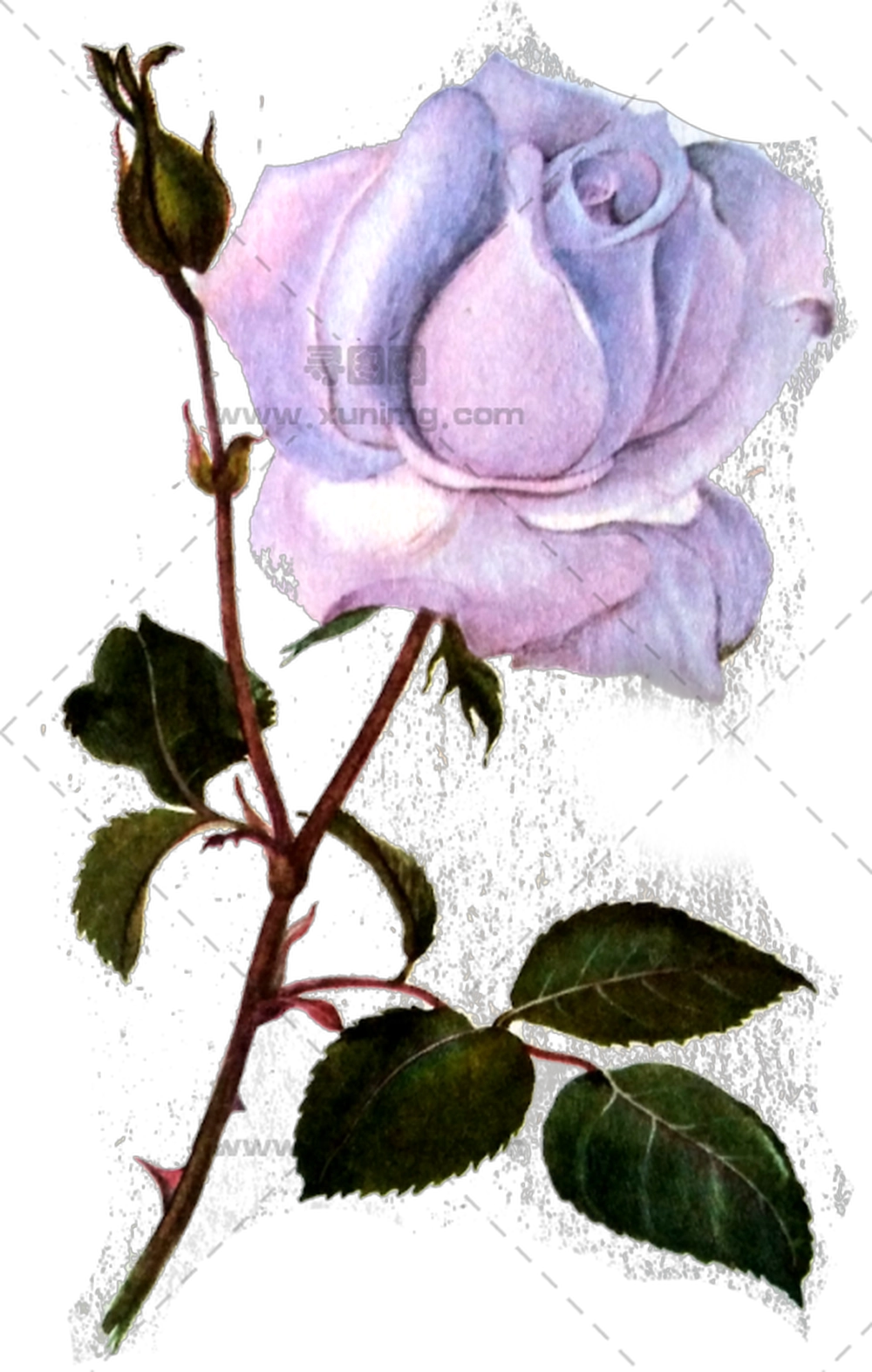 带绿叶的紫玫瑰PNG免抠图