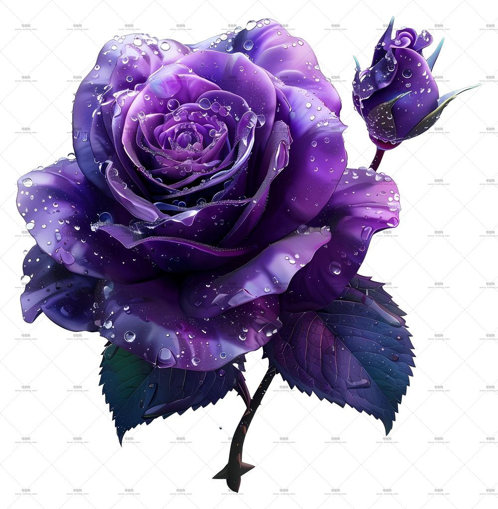 特写中的露珠紫玫瑰PNG免抠图预览图