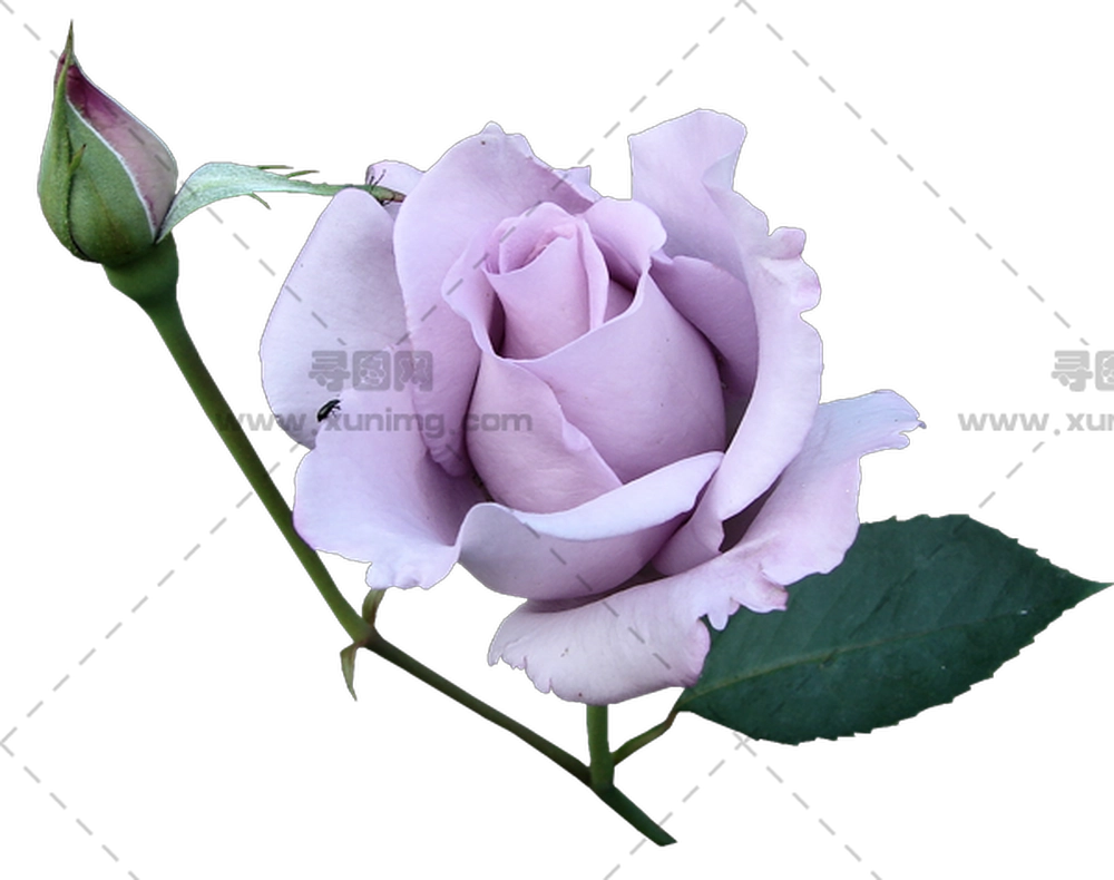 带花蕾和叶子的浅紫玫瑰PNG免抠图预览图
