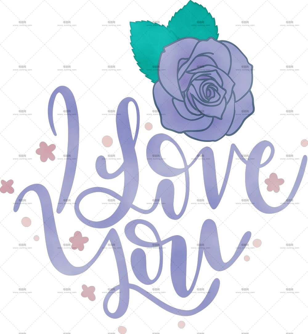 紫玫瑰和”我爱你”信息PNG免抠图预览图