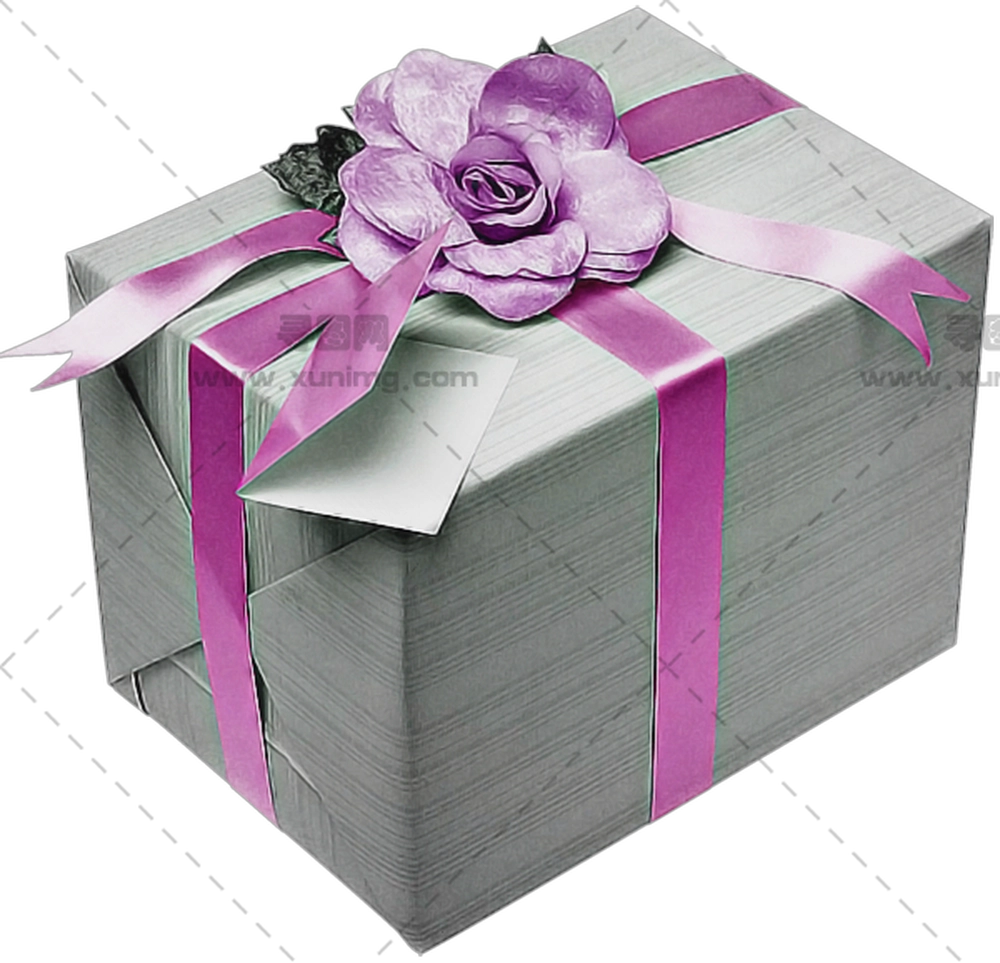 带紫玫瑰装饰的礼品盒PNG免抠图预览图