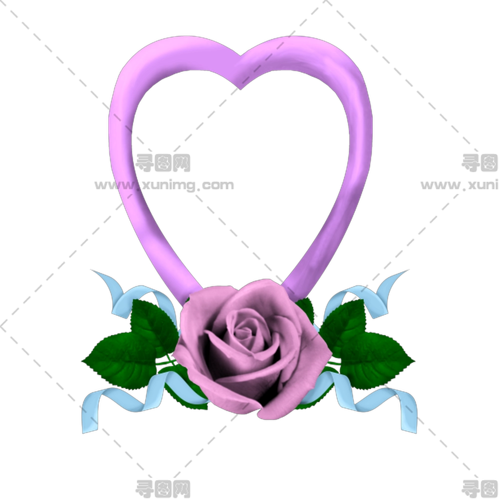 带玫瑰的紫心形框架PNG免抠图预览图