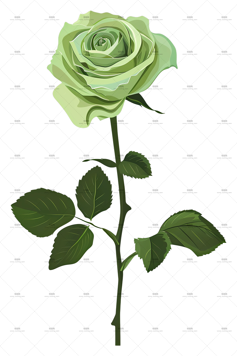带叶子的美丽绿玫瑰PNG免抠图预览图