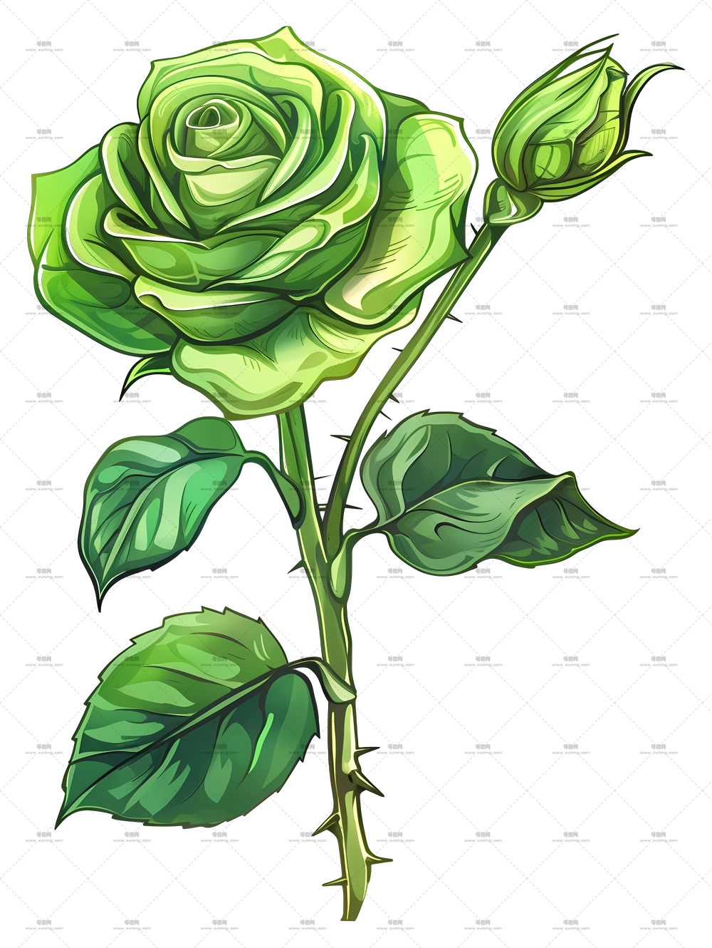 美丽红色玫瑰花和花茎叶子PNG免抠图