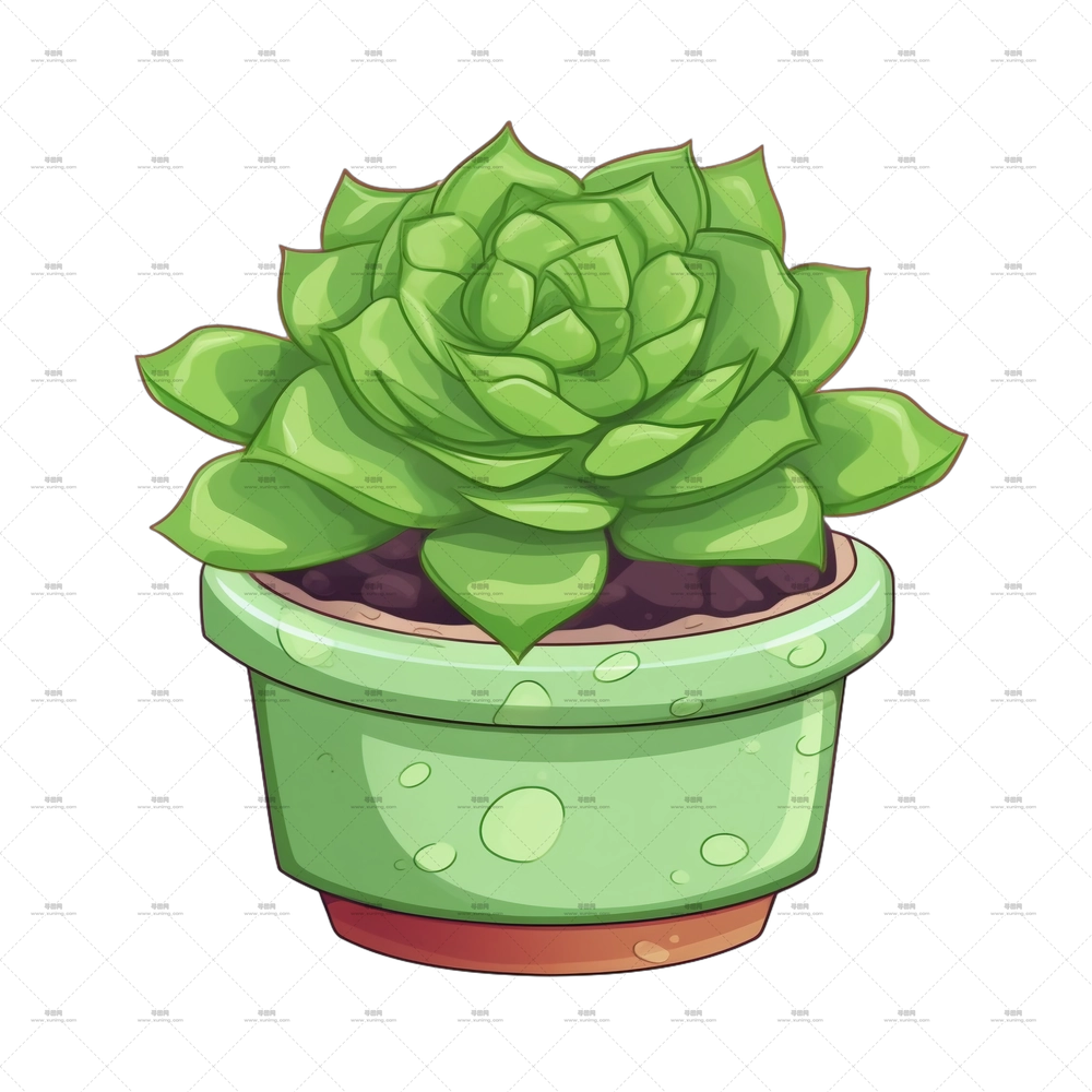 可爱绿盆栽多肉插画PNG免抠图预览图