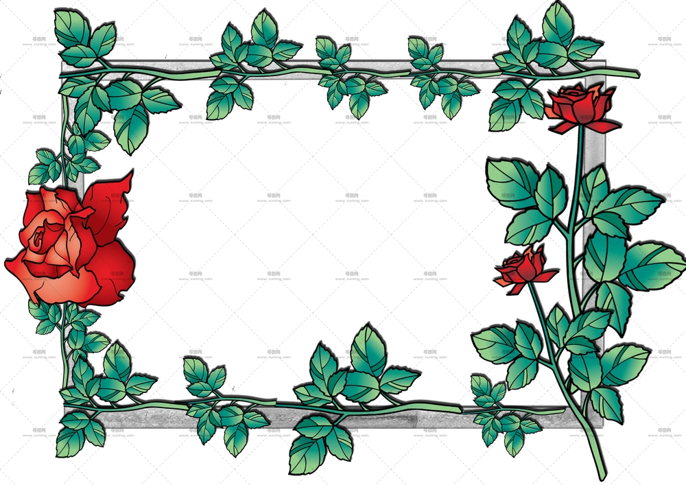 带绿叶的美丽玫瑰框架PNG免抠图预览图