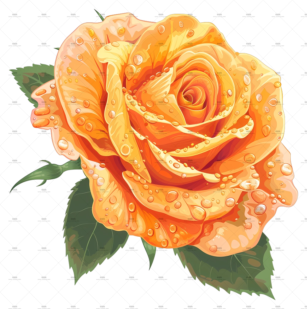 带露珠的美丽橙玫瑰PNG免抠图预览图