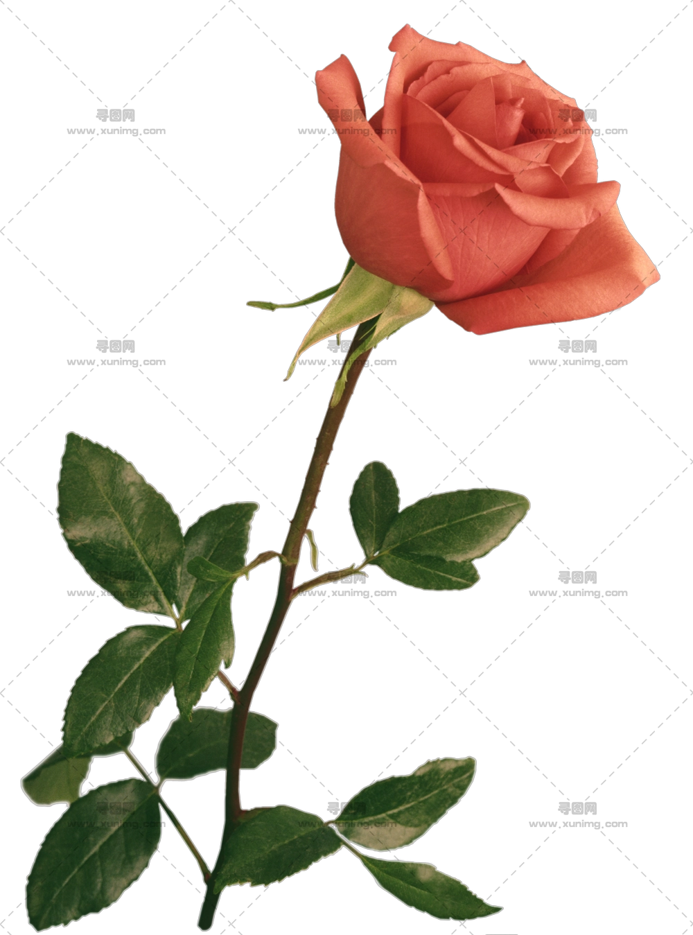 带优雅茎优雅粉色玫瑰花PNG免抠图