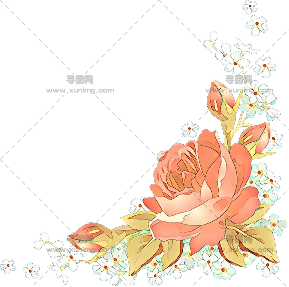 带叶子粉色玫瑰花框架PNG免抠图