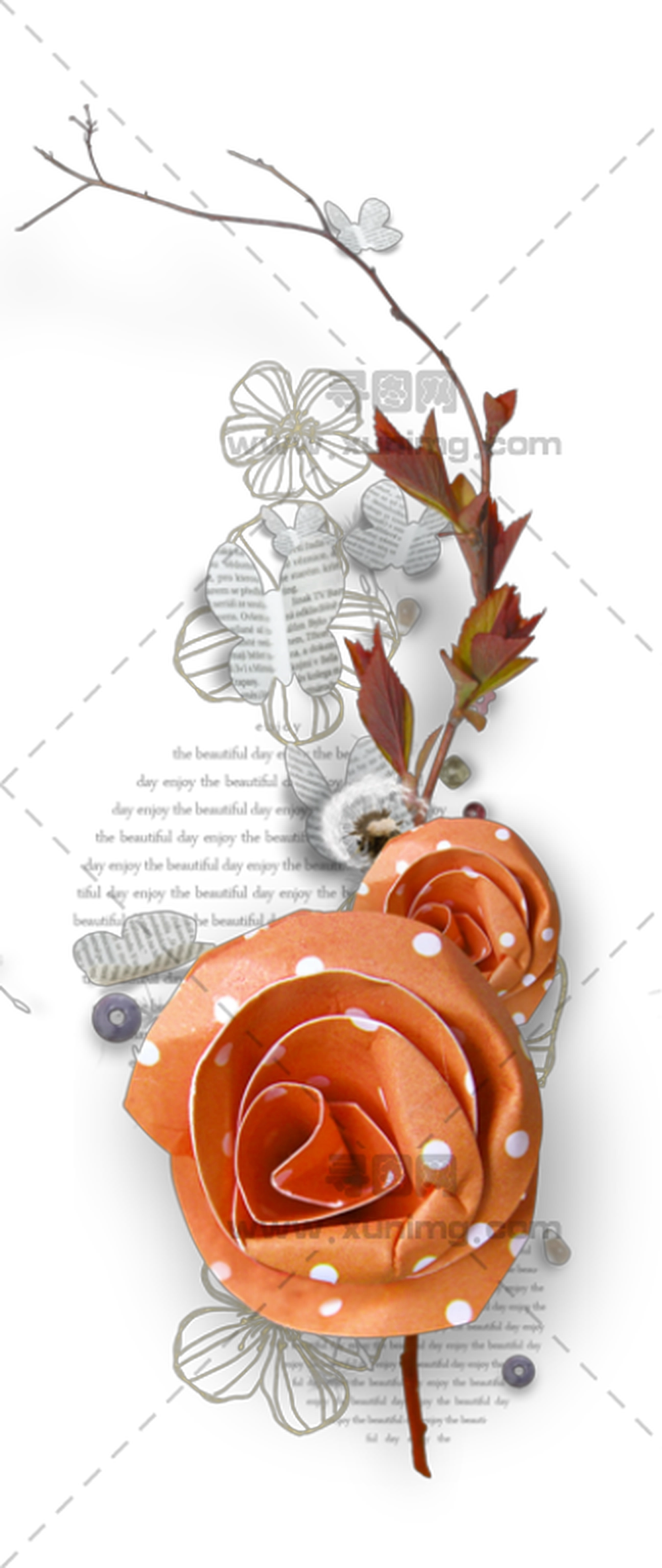 带圆点和枝条的橙玫瑰PNG免抠图预览图