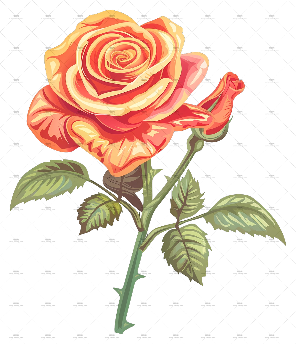 带绿茎的美丽橙玫瑰PNG免抠图预览图
