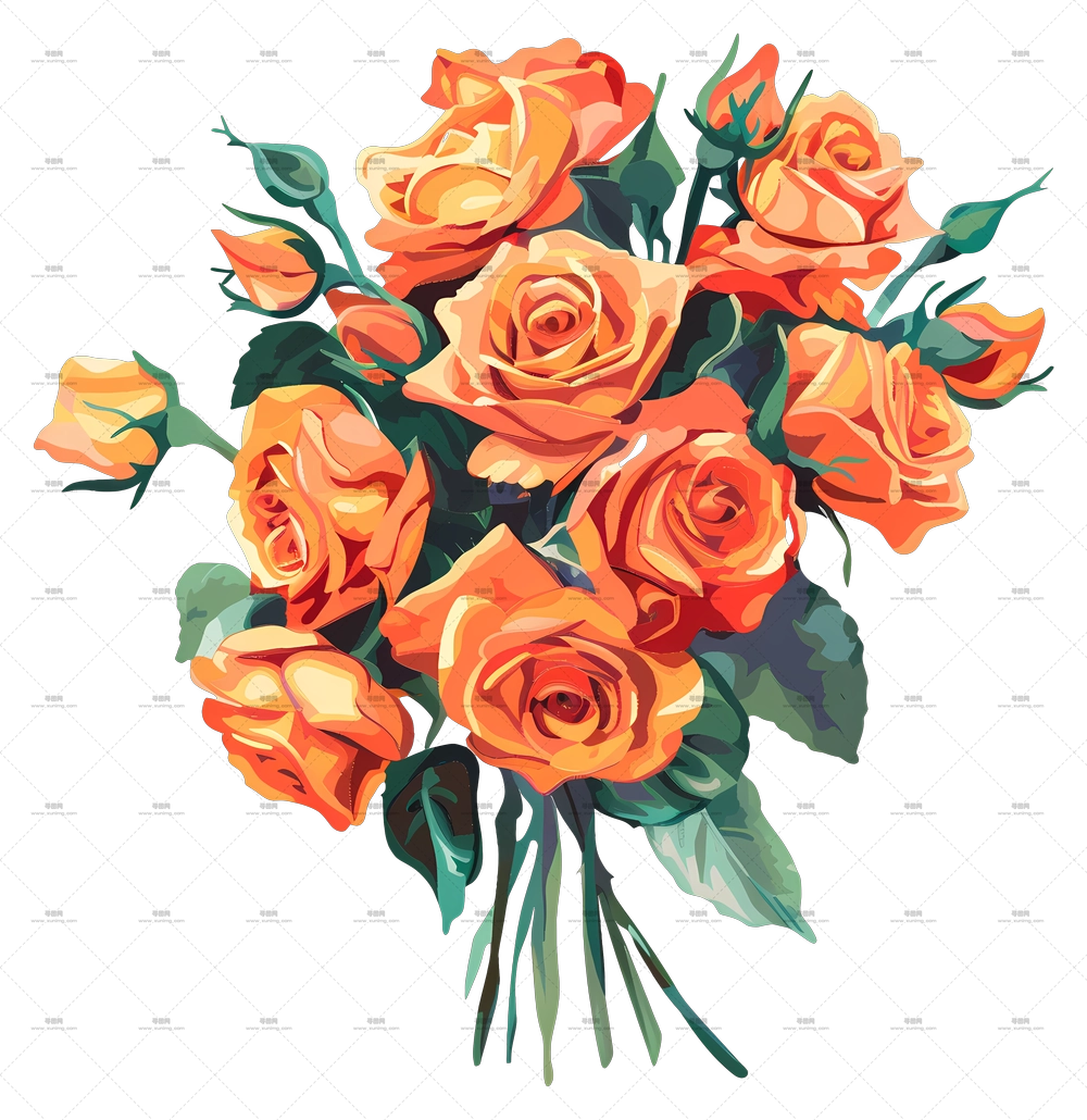 鲜艳橙玫瑰花束PNG免抠图预览图