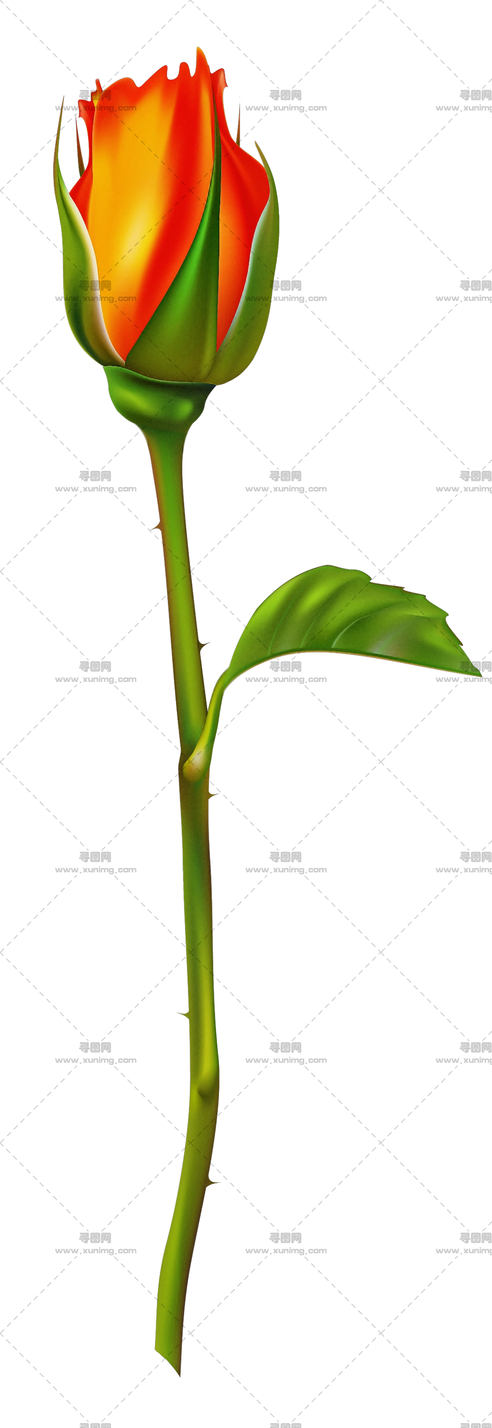 长绿茎单朵红色玫瑰花PNG免抠图