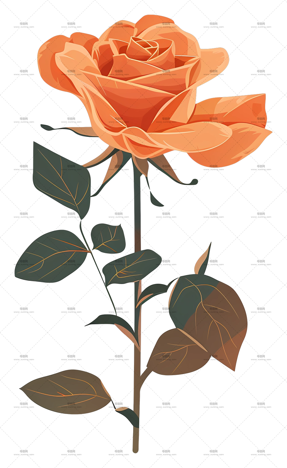 红色玫瑰花插画PNG免抠图