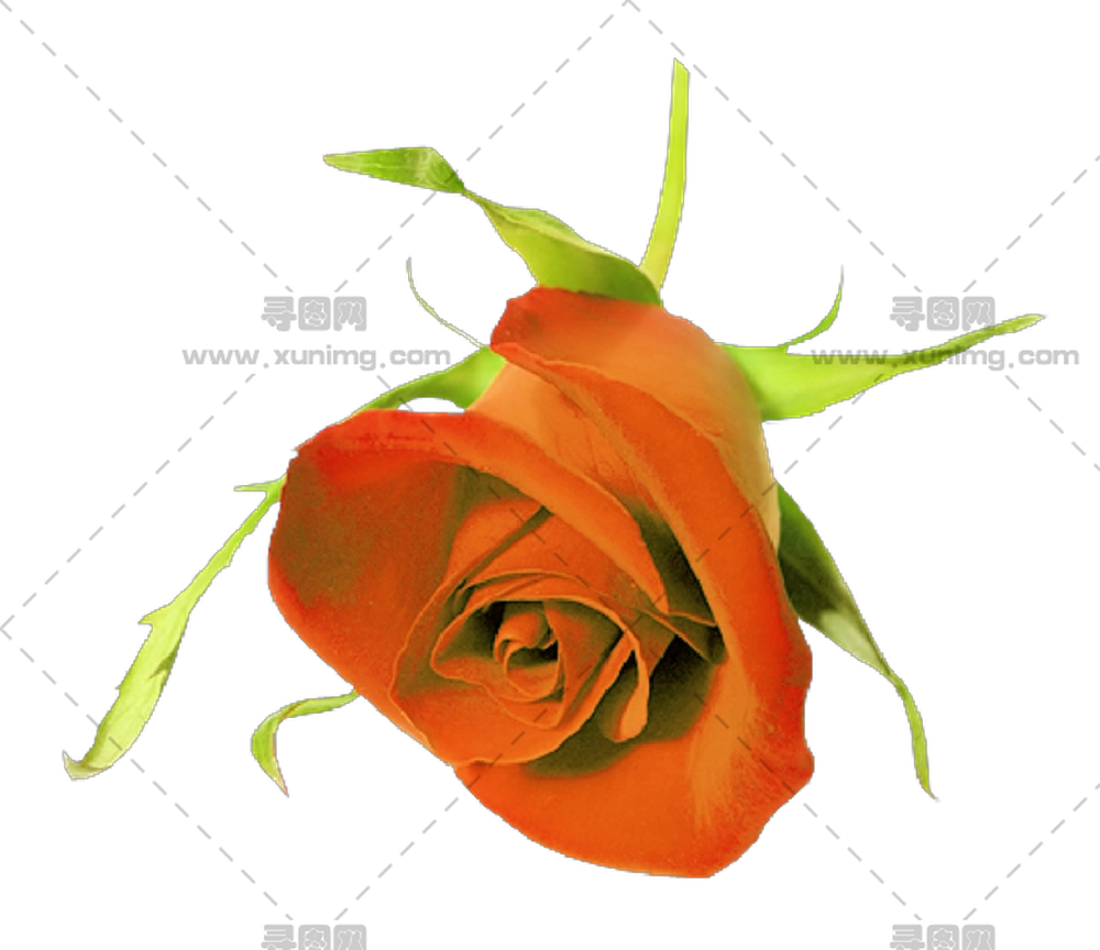 带绿叶的美丽橙玫瑰PNG免抠图预览图