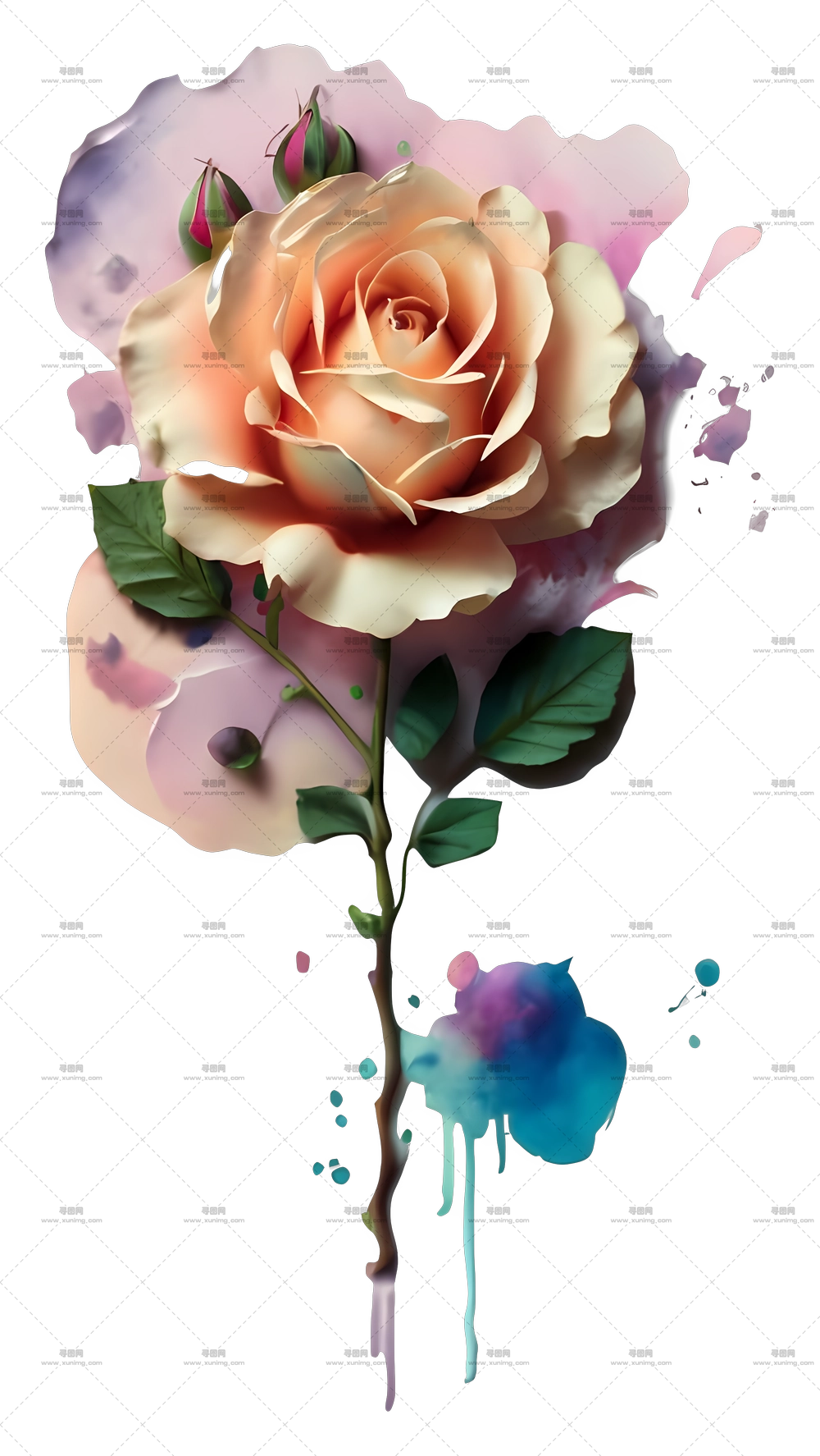 带艺术元素的精致水彩玫瑰PNG免抠图预览图