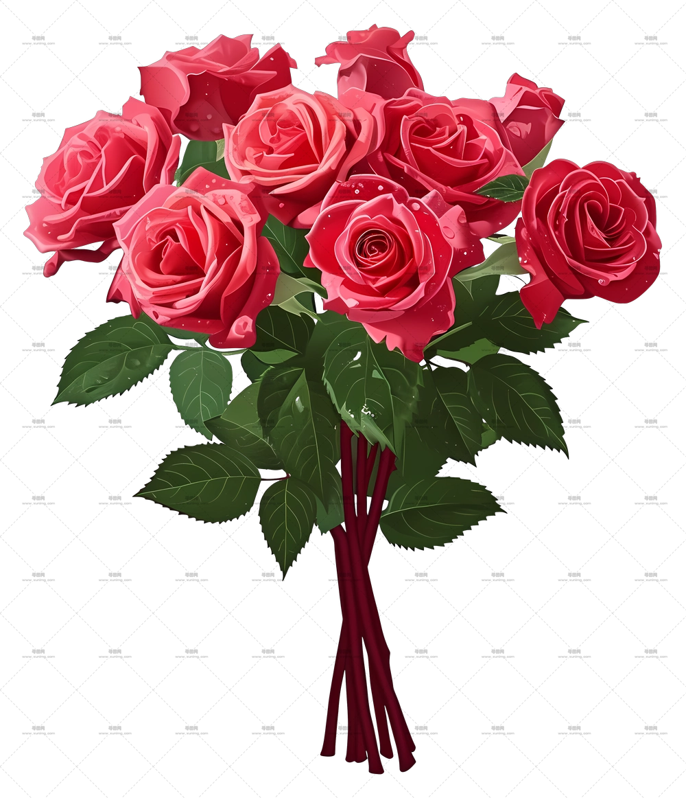 象征浪漫红玫瑰花朵PNG免抠图