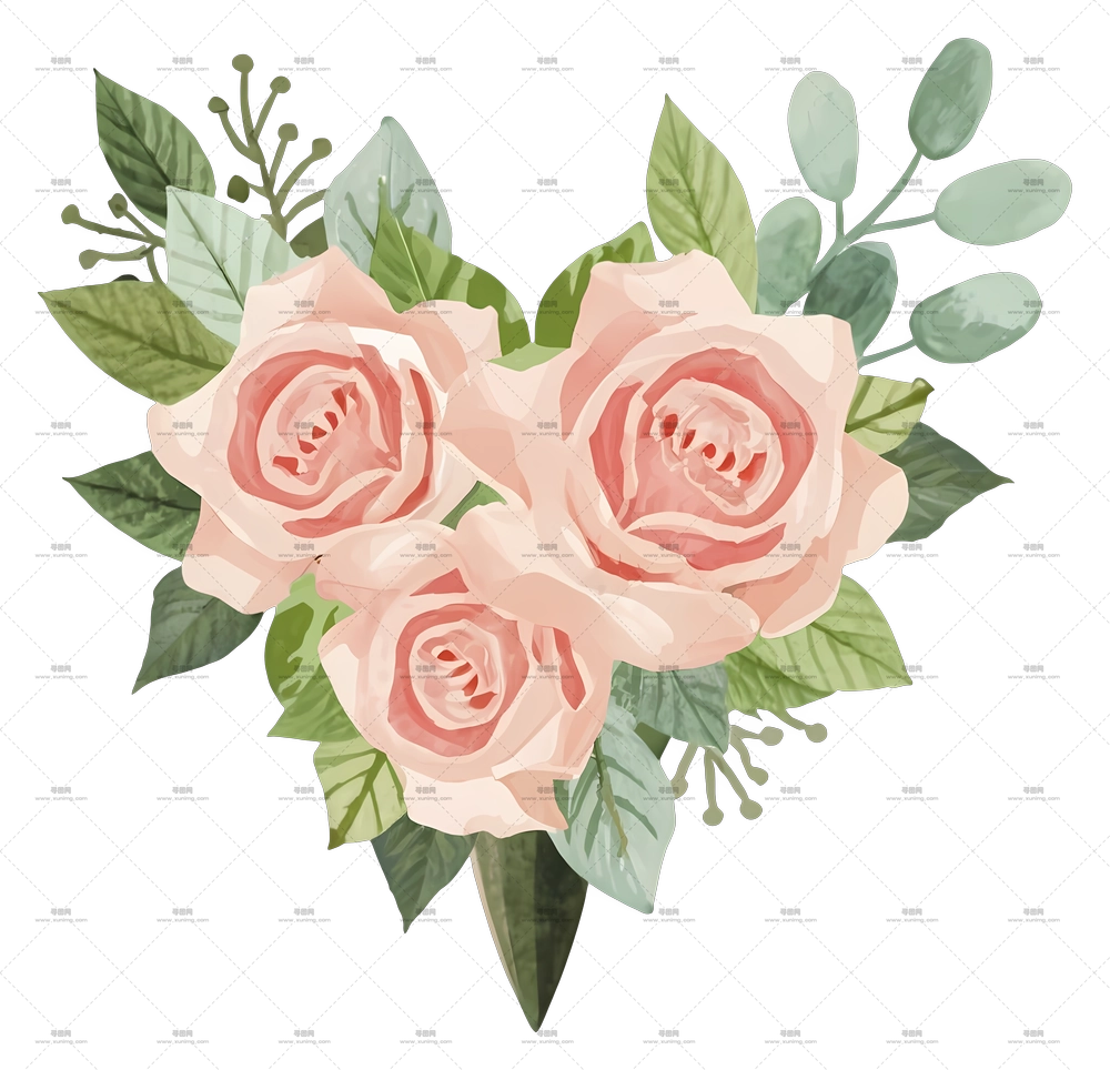 美丽粉玫瑰花束插画PNG免抠图预览图
