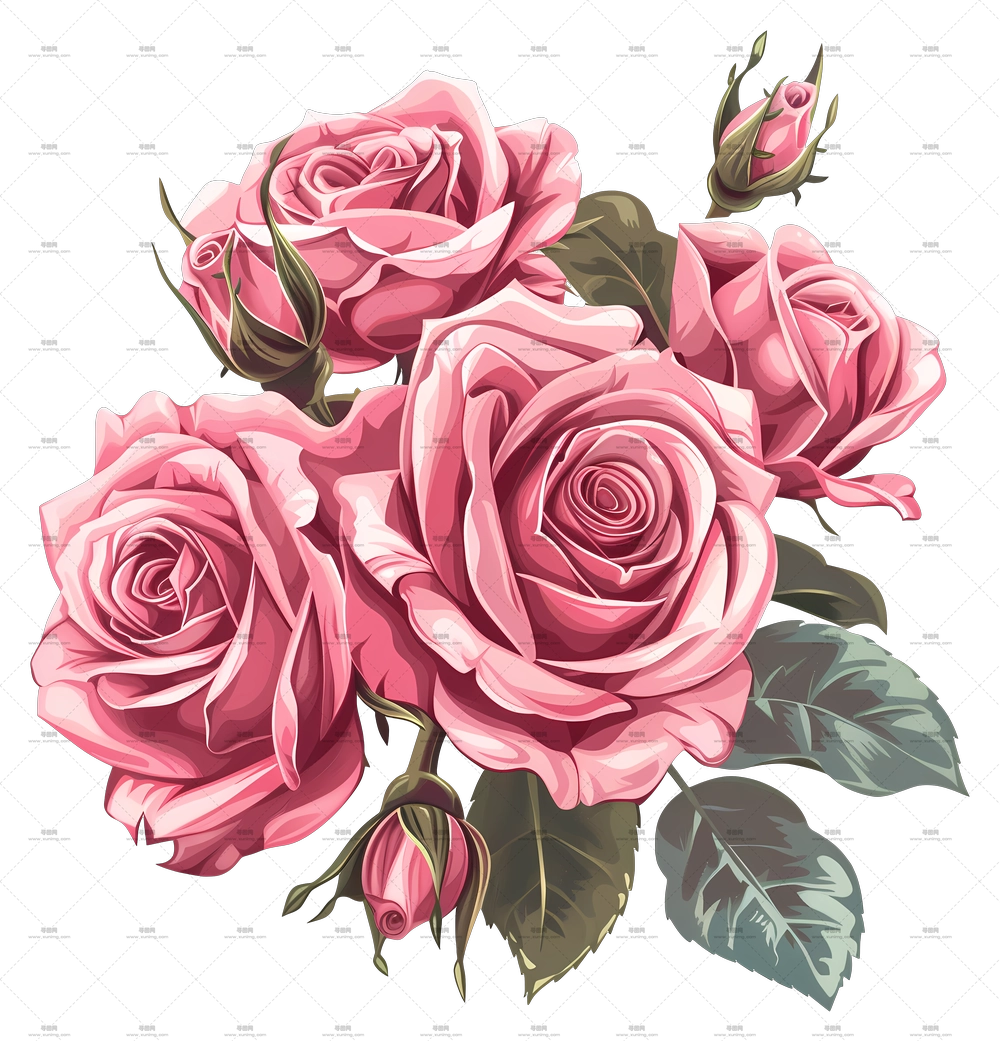 优雅水彩花卉玫瑰花插画PNG免抠图