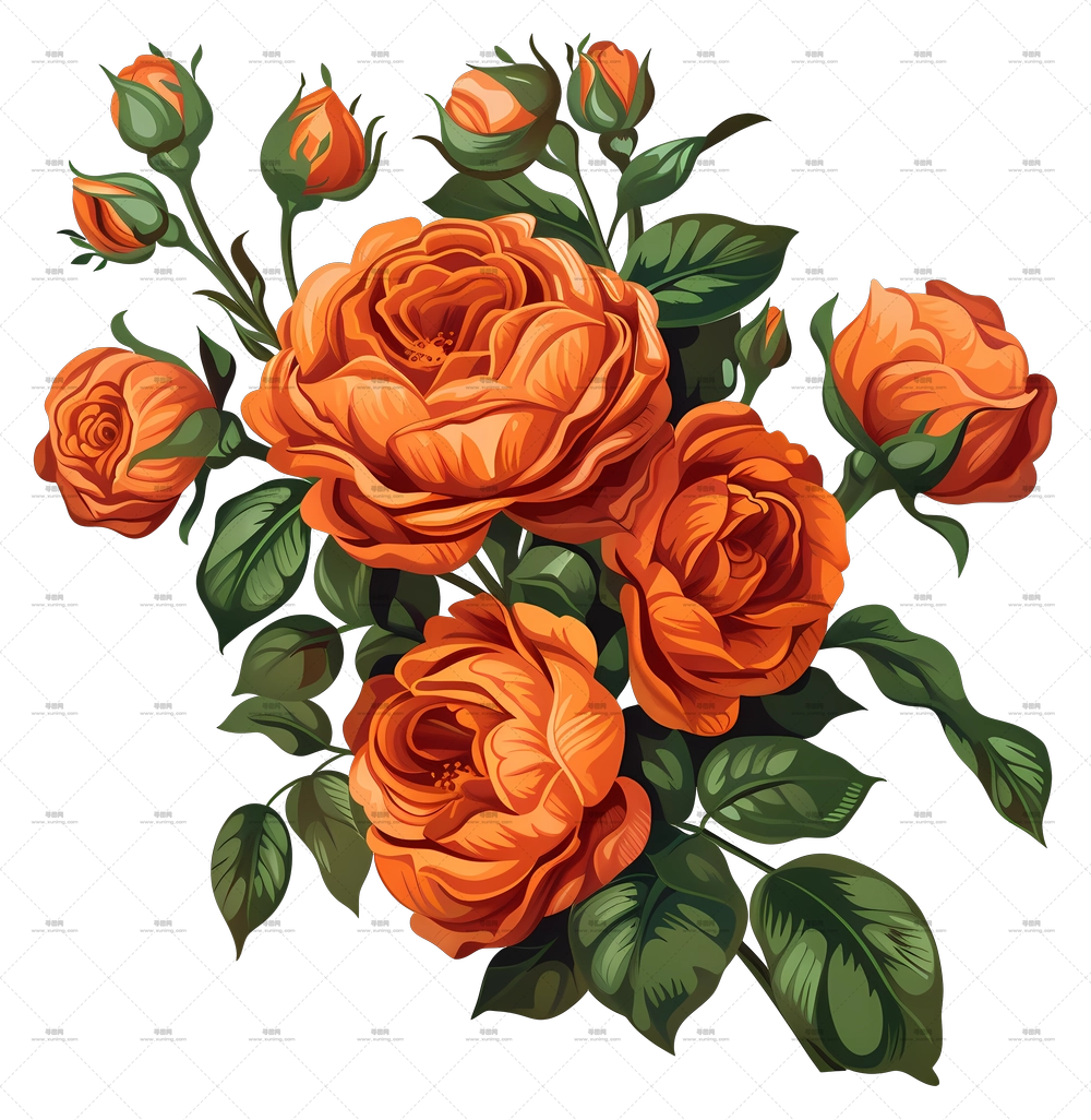 橙玫瑰花束花卉插画PNG免抠图预览图