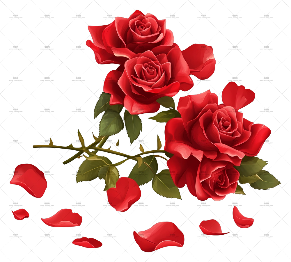 粉色玫瑰花剪影花卉插画PNG免抠图