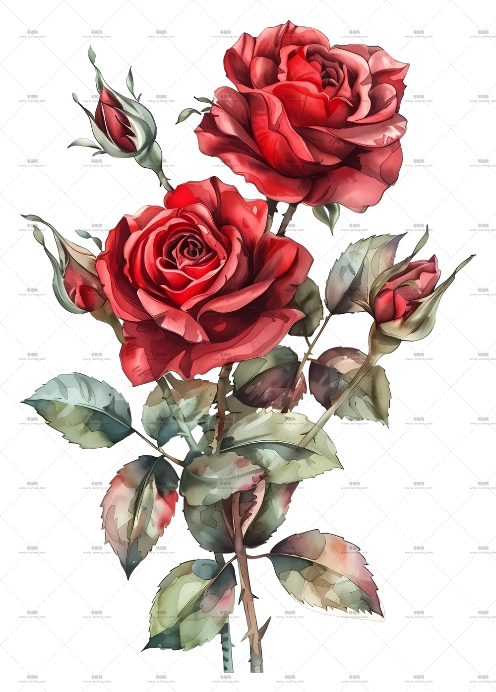 鲜艳花瓣红玫瑰绽放PNG免抠图