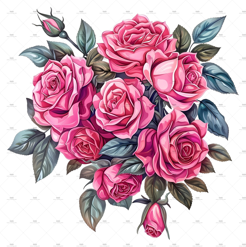粉色玫瑰花朵逼真插画PNG免抠图