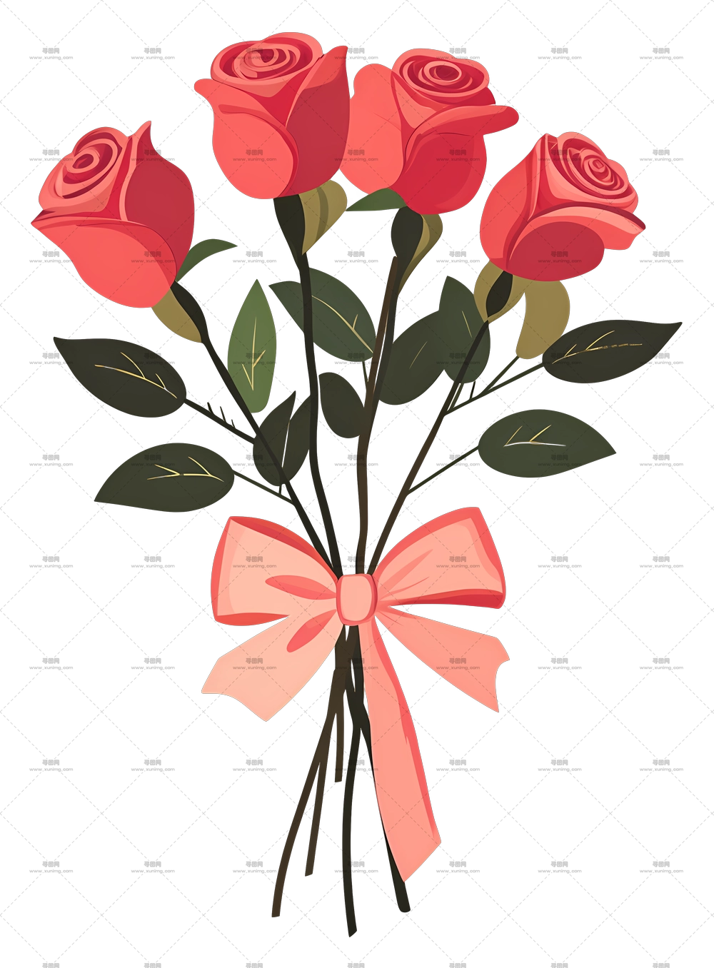 带蝴蝶结的红玫瑰花束PNG免抠图预览图