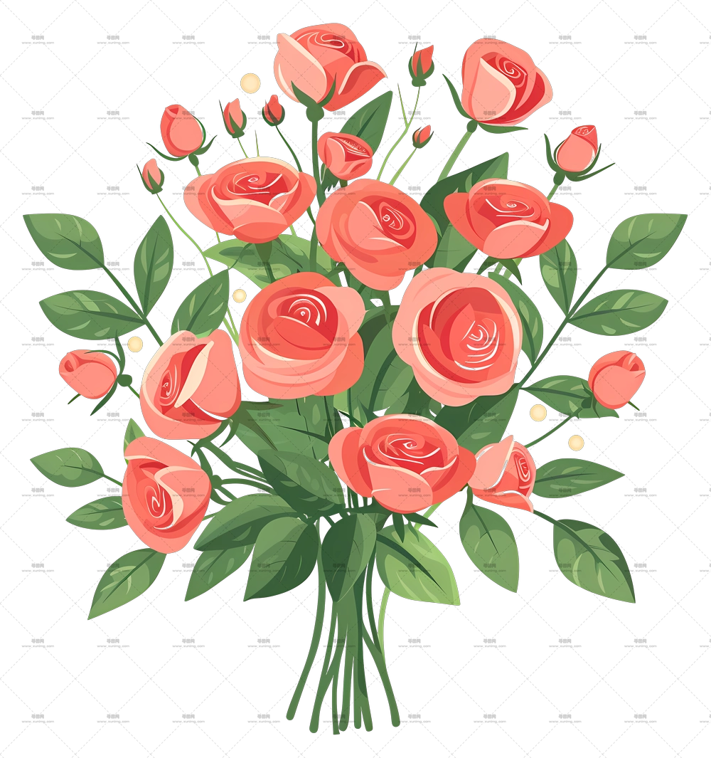 粉白玫瑰插画PNG免抠图
