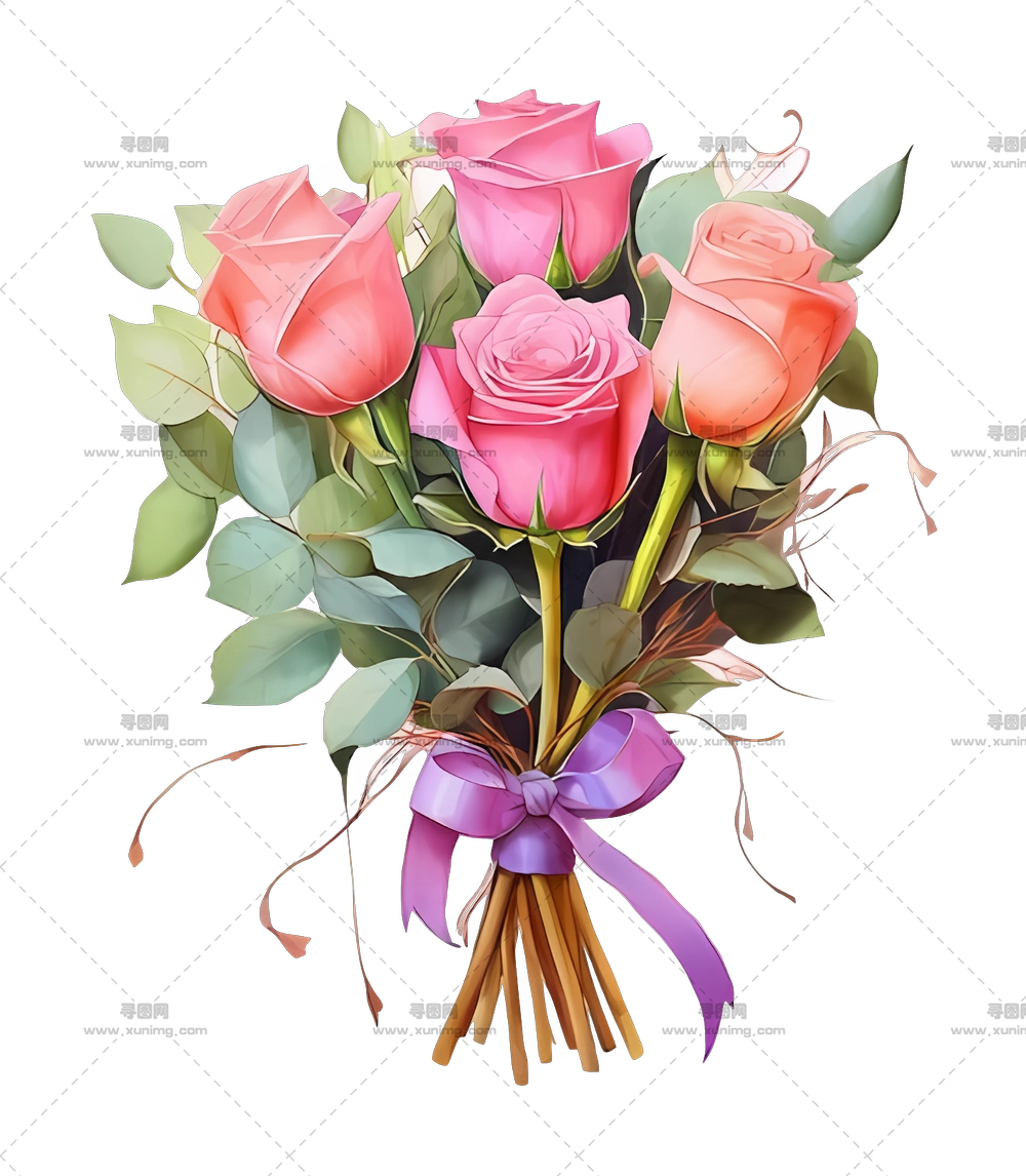 带粉花蕾的美丽玫瑰花束PNG免抠图预览图