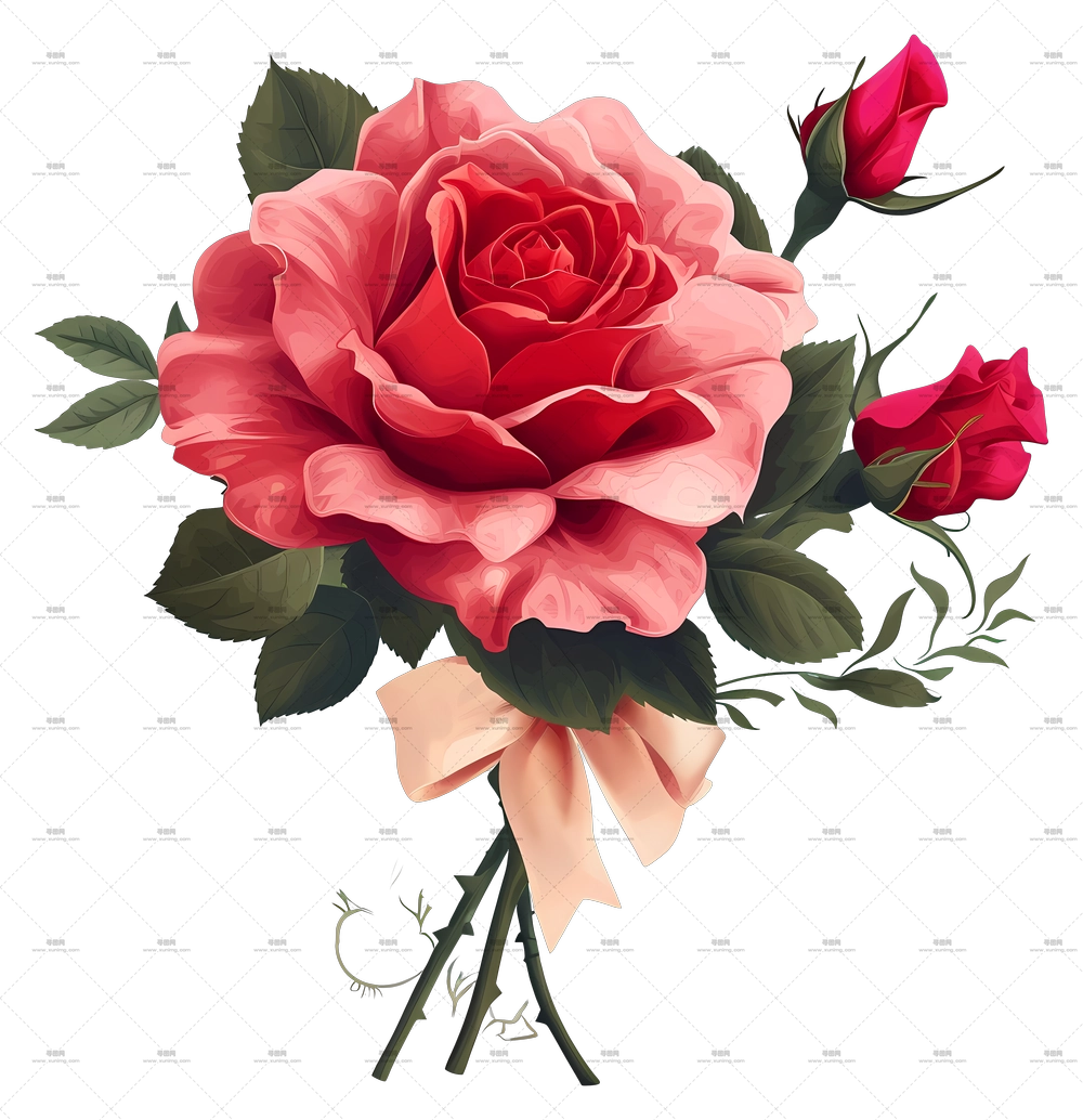 带蝴蝶结的优雅红玫瑰花束PNG免抠图预览图
