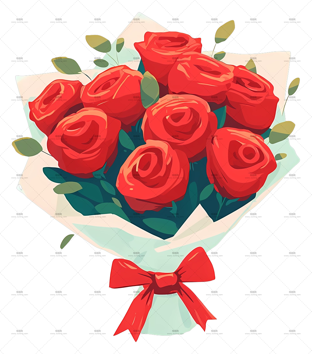 带蝴蝶结的美丽玫瑰花束PNG免抠图预览图
