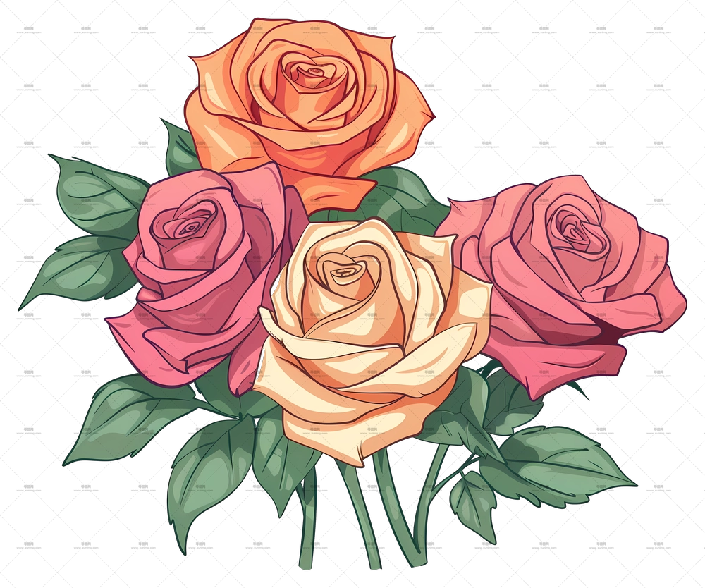 橙粉色调的玫瑰花束PNG免抠图预览图