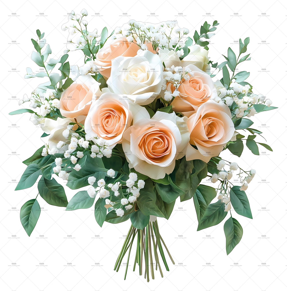 美丽玫瑰花束插画PNG免抠图