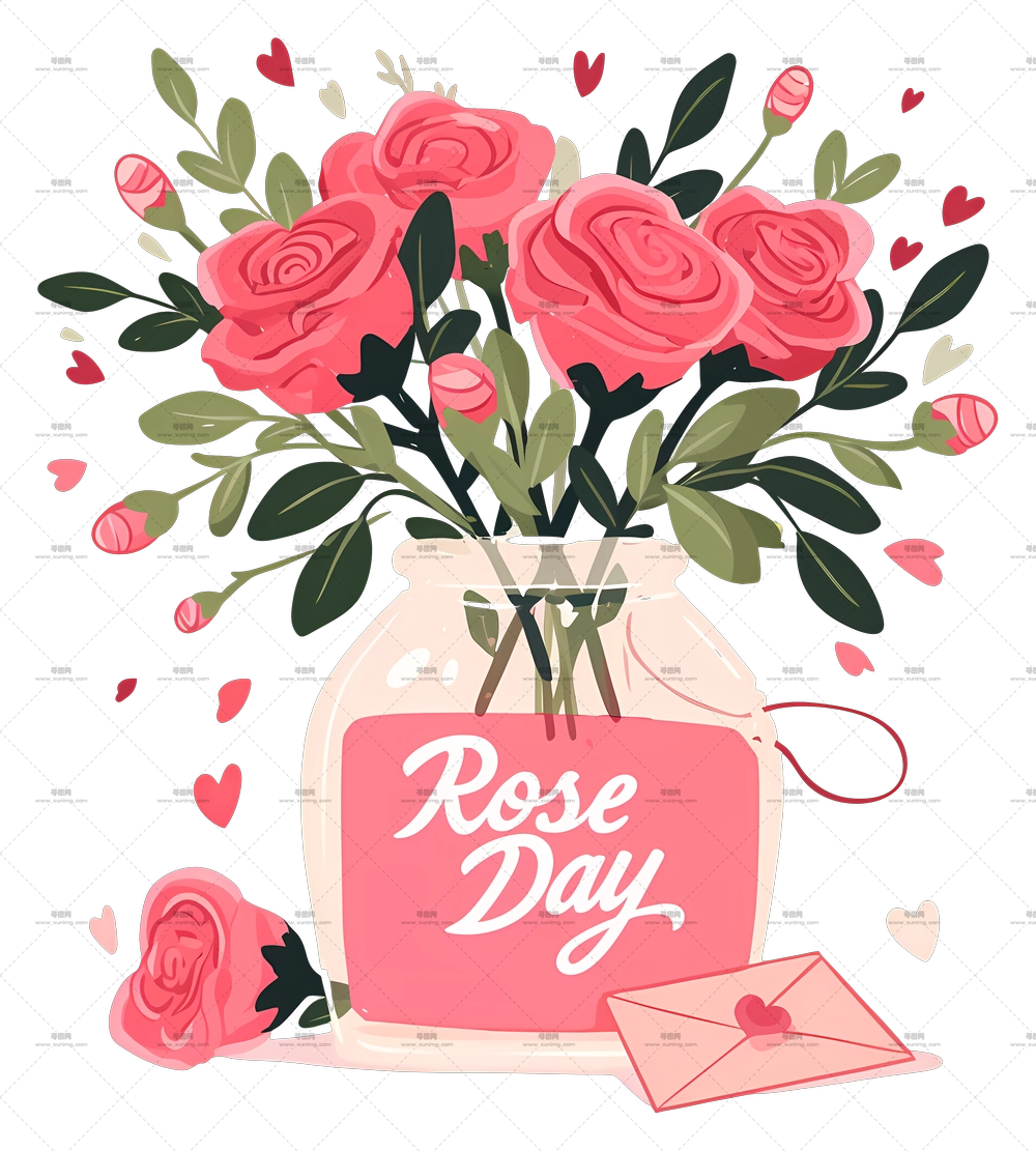 粉色玫瑰花朵插画PNG免抠图