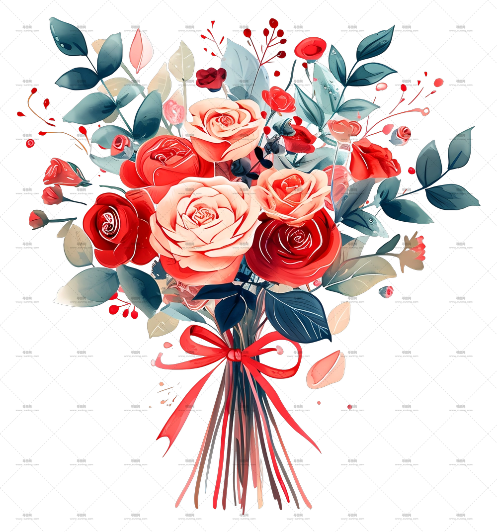 浪漫主题艺术红玫瑰插画PNG免抠图