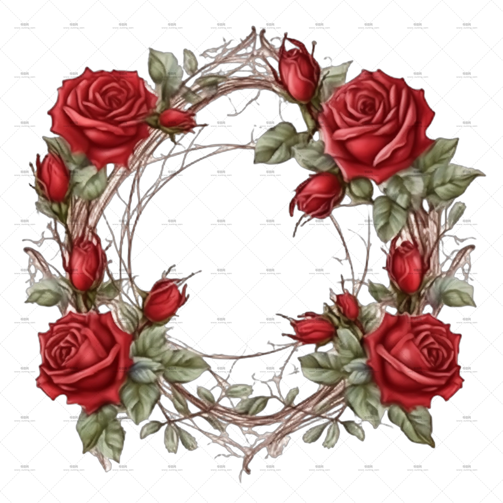 浪漫红色玫瑰花插画PNG免抠图