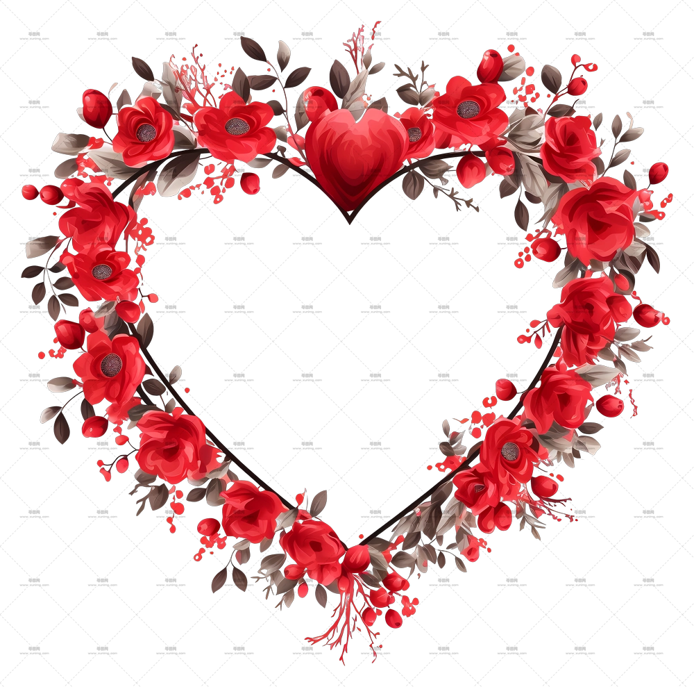 带玫瑰的心形花卉设计PNG免抠图预览图