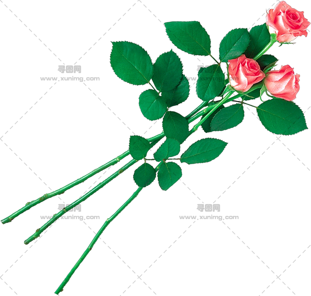 带绿茎的美丽粉玫瑰PNG免抠图预览图