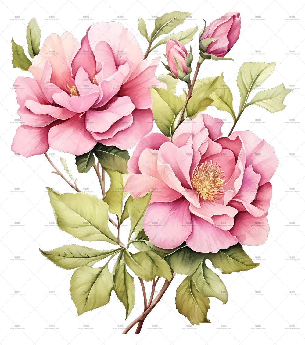 粉玫瑰花束美丽插画PNG免抠图预览图