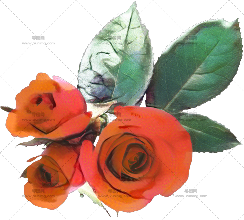 带绿叶的美丽橙玫瑰PNG免抠图预览图