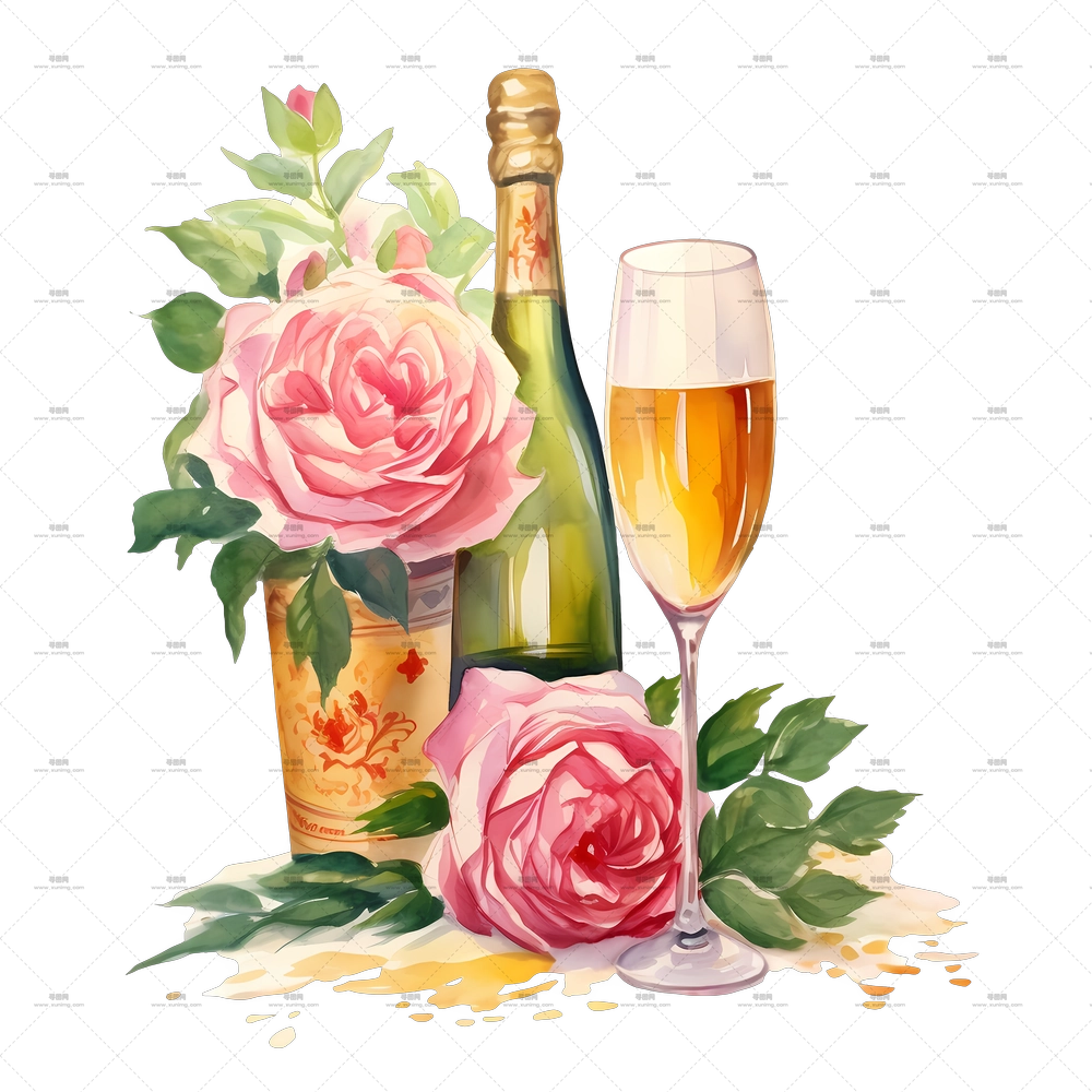优雅香槟和玫瑰插画PNG免抠图预览图