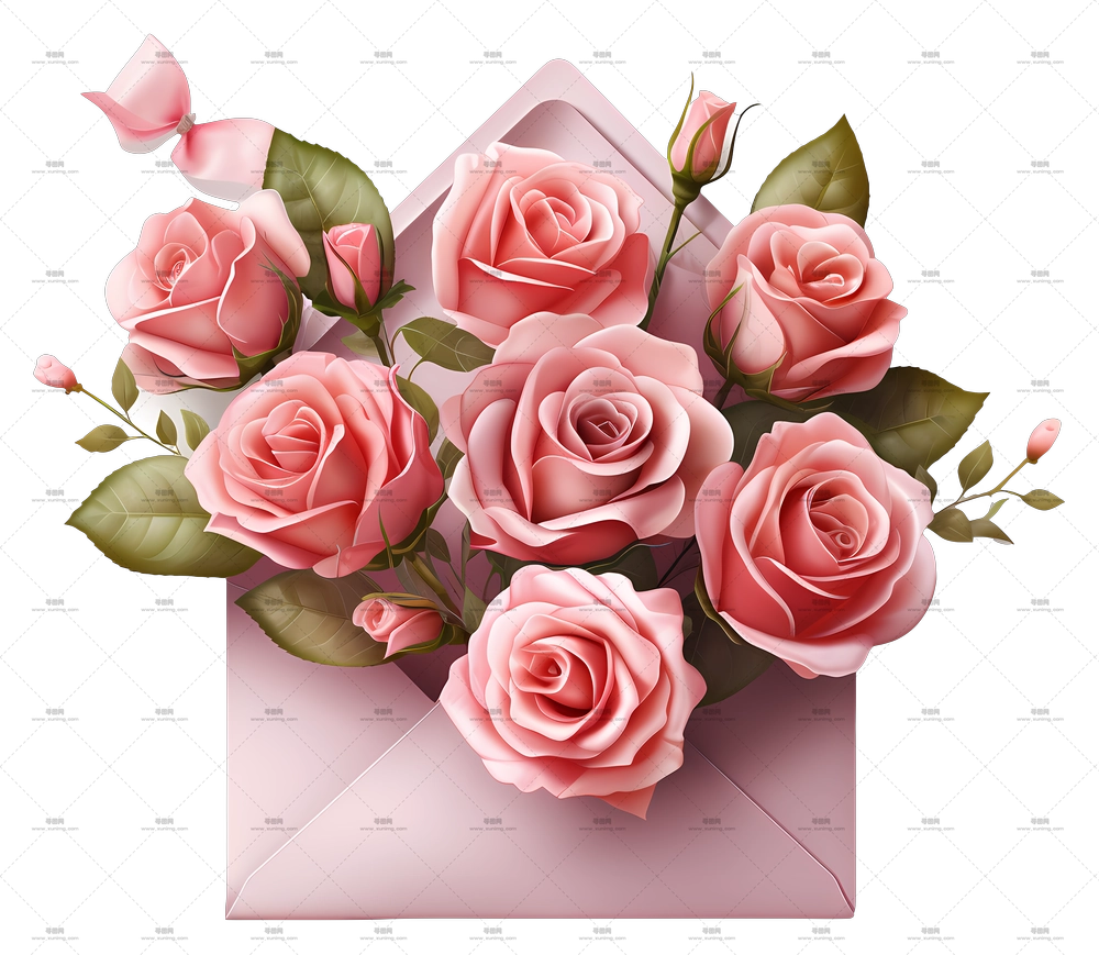 三八妇女节问候粉色玫瑰花插画PNG免抠图