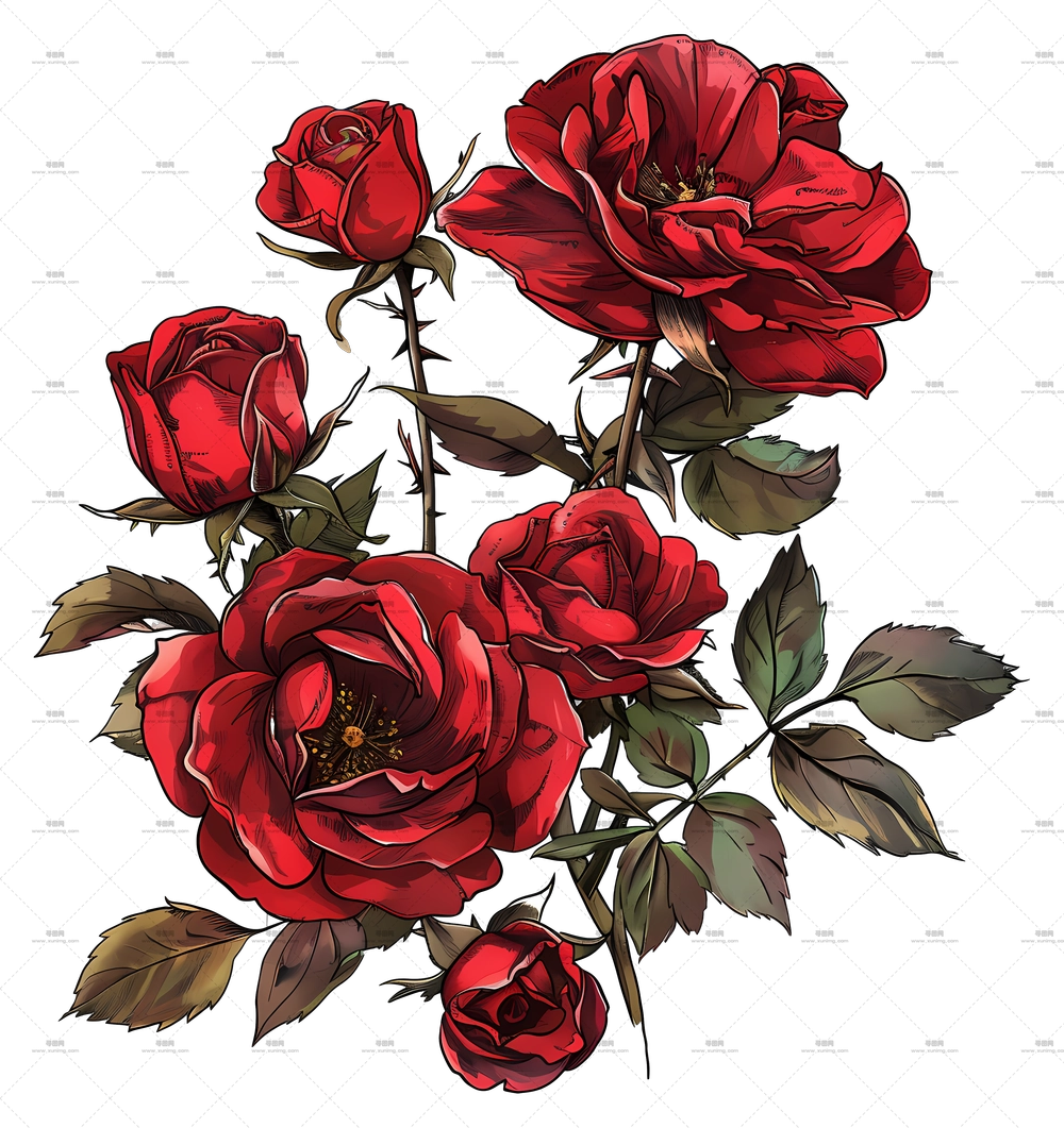 优雅红玫瑰盛开插画PNG免抠图预览图