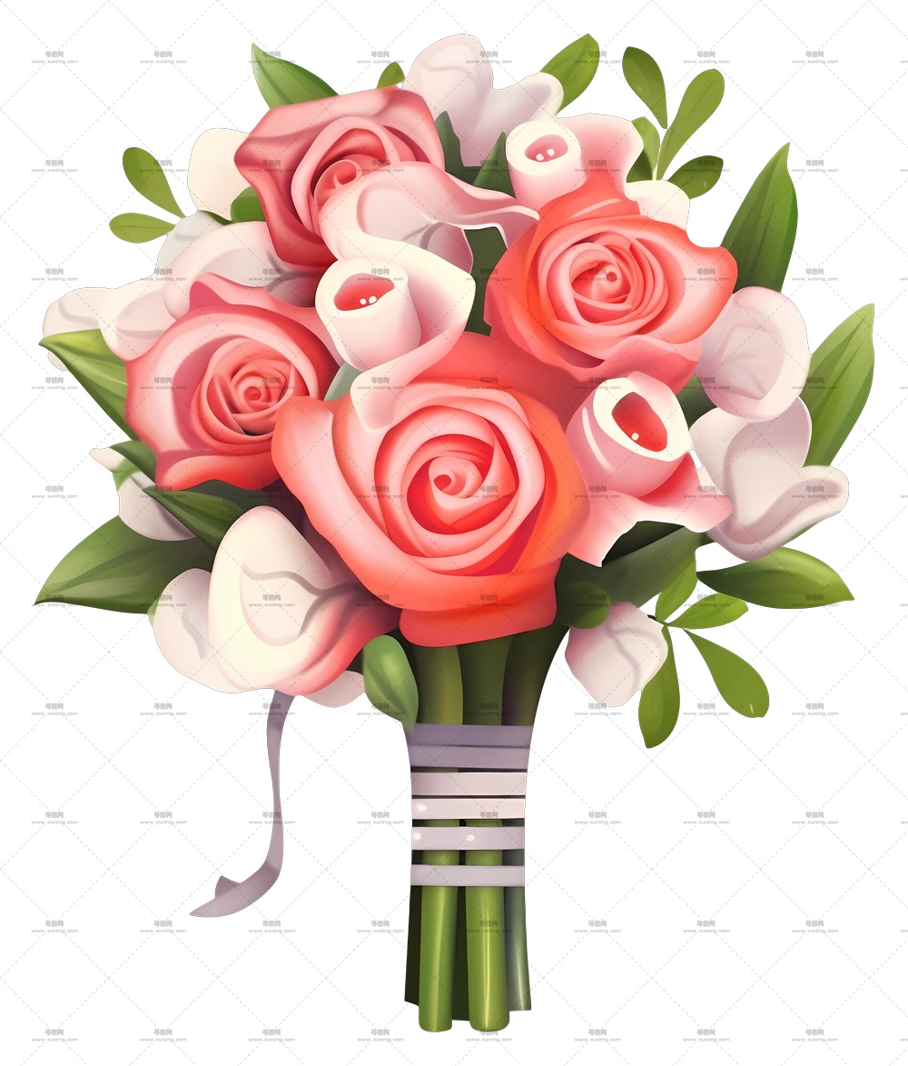 粉色花朵艺术 – 美丽的粉色花朵花束PNG免抠图