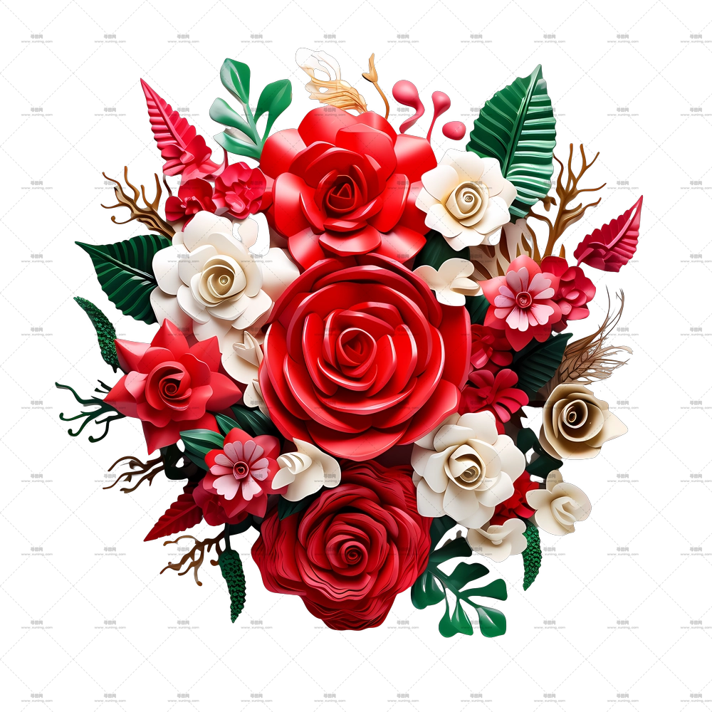 美丽红玫瑰插画PNG免抠图